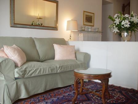 Location: This apartment is located on the top floor (an Italian second floor, walk up 68 steps) of an unassuming 12th century palazzo in the historic center of Florence. The sunny living room overlooks a quiet inner garden adjoining the garden of the hotel Monna Lisa and the Teatro della Pergola. Beyond the trees one can see Brunelleschi's cupola of the Duomo, about 150 meters away.