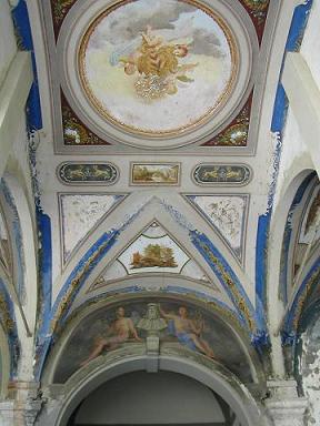 Entrance of building, from the 12th century, with real ancient mosaic....